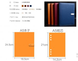 Leather Notebook venus 14 Jan 2019 PU notebook with powerbank and usb pendrive Powerbank notebook with USB pendrive flashdrive and cables Size: A5 ( 18.5CM*24.5CM) Battery: 3000mAh, 6000mAh, 12,000mAh Flash driver memory: 8GB, 16GB, 32GB Material: PU